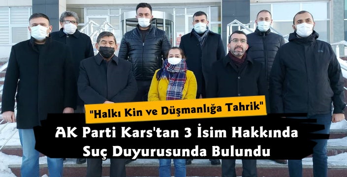 Kars Güncel- Kars Adliyesi'ne gelen AK Parti Kars İl Başkanı Adem Çalkın ve il yönetiminden isimler Cumhuriyet Başsavcılığı'na suç duyurusunda bulundu.