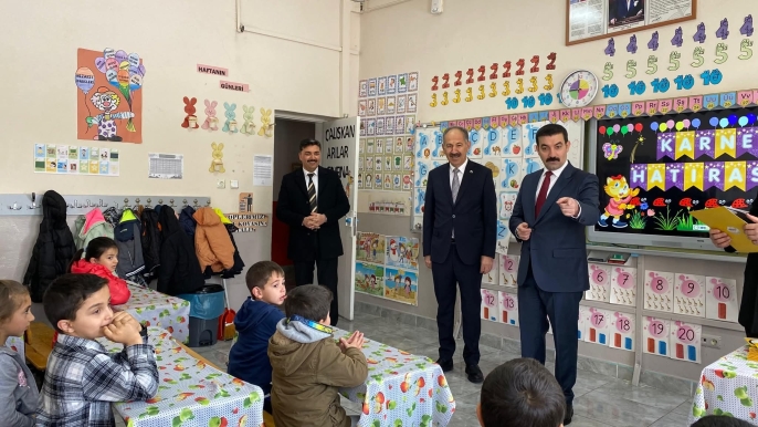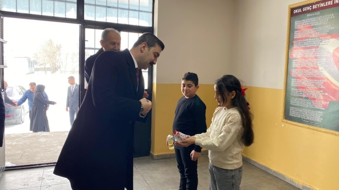 Arpaçay Kaymakamı Muhammed Burak Akköz, 2025-2026 eğitim-öğretim yılı birinci dönem yarıyıl karne dağıtım törenlerine katılarak öğrencilerin heyecanına ortak oldu.