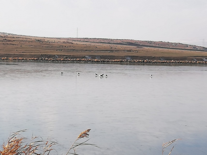 Kars Güncel- Kars Ardahan il sınırları arasında olan Çıldır Gölü'nün yüzeyi soğuk havaların etkisini arttırmasıyla beraber buz tutmaya başladı.