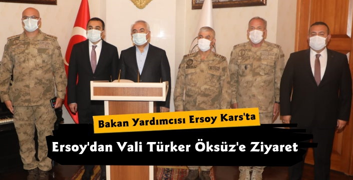 Kars Güncel-Bölge illeri Erzurum ve Aradahan'da bir dizi incelemelerde bulunduktan sonra Kars'a gelen İçişleri Bakan Yrd. Mehmet Ersoy, Jandarma Gn.Komutanı Org. Arif Çetin, Jandarma Bölge Komutanı Tuğg. Semih Okyar, Vali/Belediye Baskan V. Türker Öksüz'ü makamında ziyaret etti.
