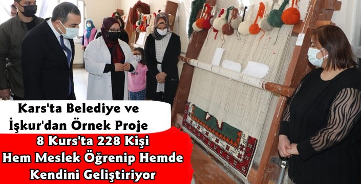 Kars Güncel-Vali/Belediye Başkanı Türker Öksüz, sosyal belediyecilik faaliyetlerimiz kapsamında İŞKUR İl Müdürlüğü ve Halk Eğitim Merkezi’nin işbirliğiyle düzenlenen “Halı Dokuma Kursu”nu ziyaret etti.