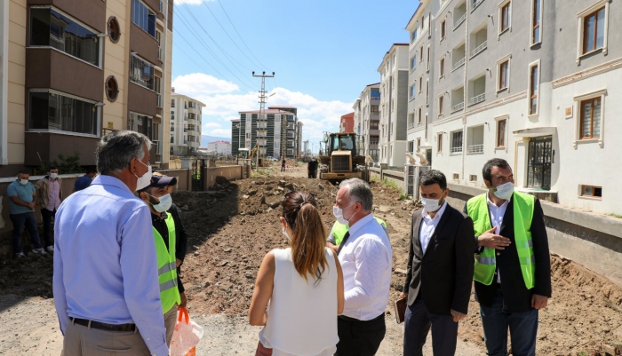 Kars Belediye Başkanı Ayhan Bilgen ve Şevin Alaca Yenişehir Mahallesi'nde başlatılan yol yapım çalışmalarını yerinde inceleyerek yetkililerden bilgiler aldı.