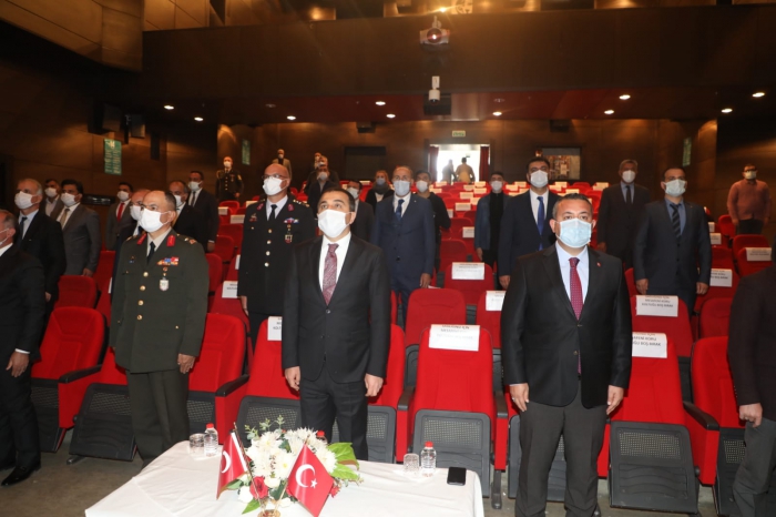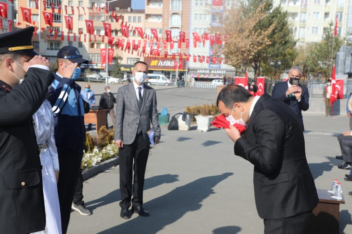 Saygı duruşu ve İstiklal Marşının okunmasının ardından Vali/Kars Belediye Başkan Vekili Türker Öksüz, günü anlam ve önemine dair bir konuşma gerçekleştirdi.