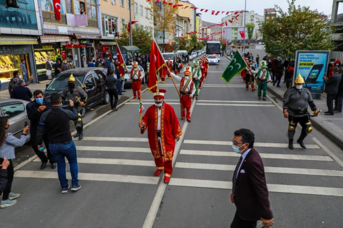 Şanlı bayrağımızı 100 yıl önce Kars Kalesi burçlarına diken yiğit ecdadımızın emaneti, emin ellerdedir ve biz Karslılar, ecdadın bırakmış olduğu kutsal mirasın yılmaz bekçileriyiz." dedi.