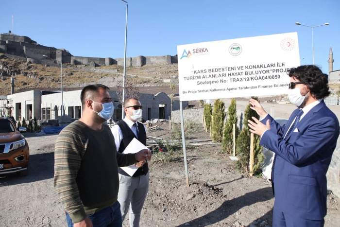 Yine İl Özel İdaresi’nin Ajansa sunduğu ve Ajansın destek verdiği “Kars Bedesteni ve Konakları ile Turizm Alanları Hayat Buluyor” projesi de tamamlanmak üzere. Proje kapsamında Kars Kalesi altında bulunan bölgede bedesten, kaleye bağlı yürüyüş yolu ve Osmanlı Konakları inşa ediliyor. Proje ile birlikte Kars Kalesi ve çevresi Kars turizmine kazandırılacak. 6 milyonluk proje bütçesinin yüzde 25’ini SERKA karşılıyor. Çalışmaları devam eden projede sona yaklaşıldı.