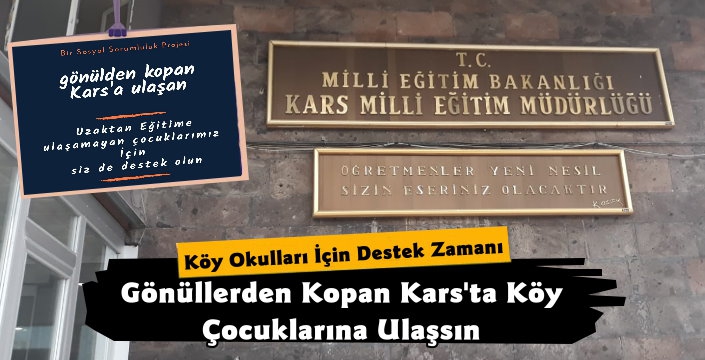 Kars Güncel- İl Milli Eğitim Müdürlüğü'nden yapılan açıklamada; "Bir sosyal sorumluluk projesi olan 'Gönülden Kopan Kars'a Ulaşan' çalışmaları, Milli Eğitim Müdürü Aydın Acay ve projede gönüllü olarak yer alan öğretmenlerin katılımıyla gerçekleşen toplantıyla başladı.