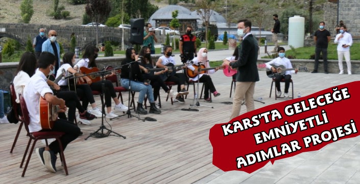 Kars Güncel- Kars İl Emniyet Müdürlüğü'nden yapılan açıklamada; "TDP Birimimizce Geleceğe Emniyetli Adımlar Projesi kapsamında Gitar Kursunu tamamlayan ve Kars Kalesi Bedestende gitar dinletisi hazırlayan 10 öğrenciye Vali Türker Öksüz, İl Emn.Müd. Yavuz Sağdıç, İl Milli Eğitim Müd. Aydın Acay tarafından gitar hediye edilmiştir." denildi.