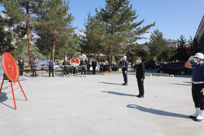 Atatürk Anıtına çelenkleri; Vali Türker Öksüz, 14 Mekanize Piyade Tugay Komutan Yardımcısı Albay Erhan Altın ve Belediye Başkan Vekili Şevin Alaca sundu.