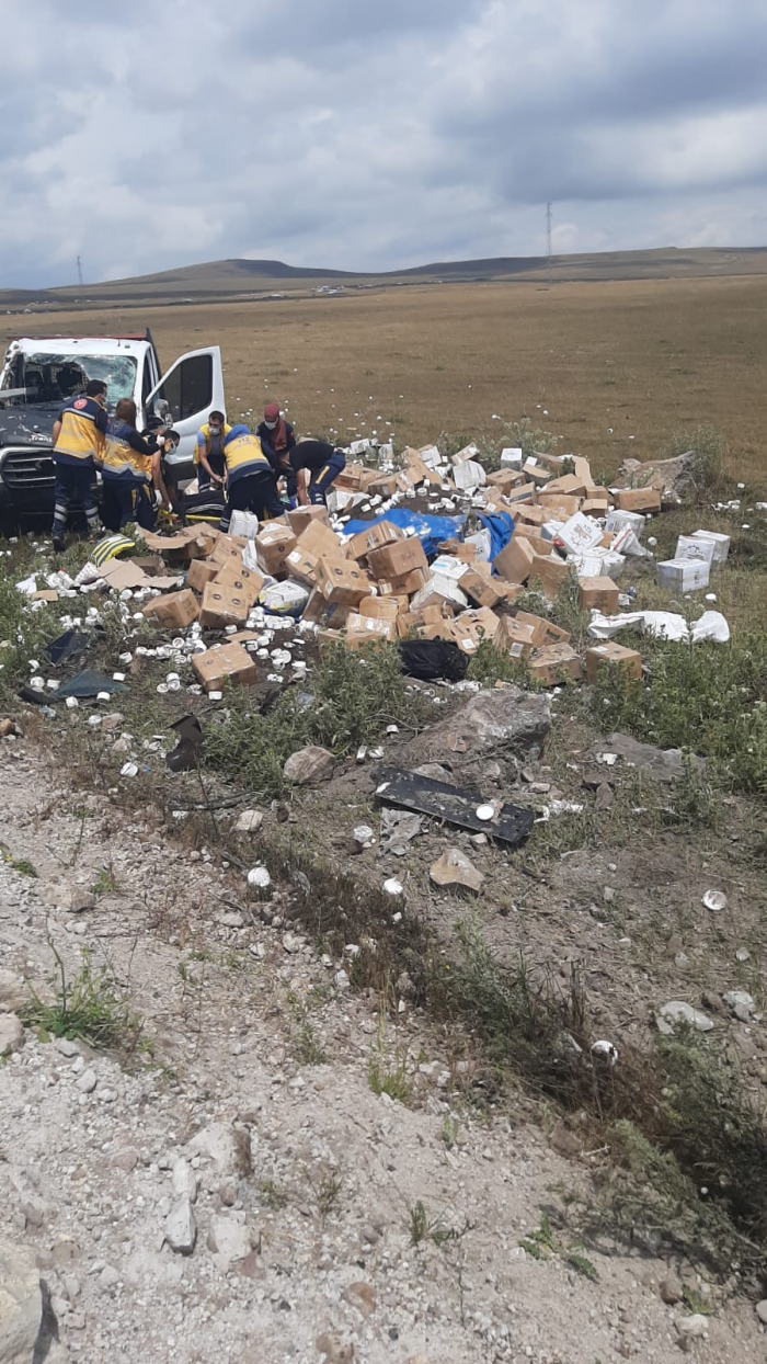 Kars Güncel- Edinilen bilgiye göre Kars Digor karayolu Hanlar Geçidi bölgesinde kozmetik eşya yüklü olan kamyonet sürücüsünün kontrolünden çıktı. Kontrolden çıkan kamyonet şarampole uçtu.