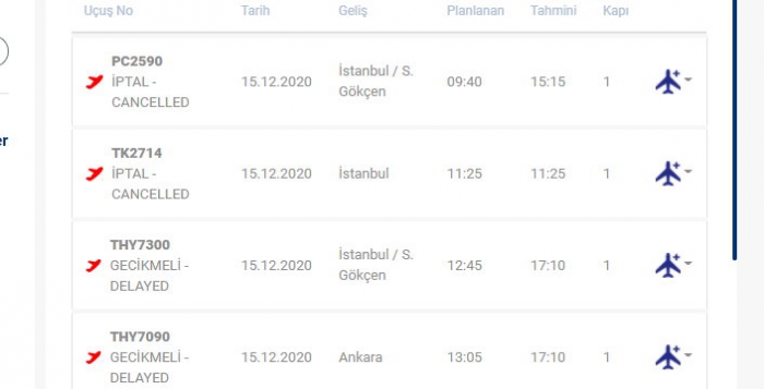 Kars Güncel- Türk Havayollarının THY7091 uçuş kodlu Kars - Ankara seferi saat 13:45'te gerçekleşmesi beklenirken olumsuz hava şartları nedeniyle henüz gerçekleştirilmedi.