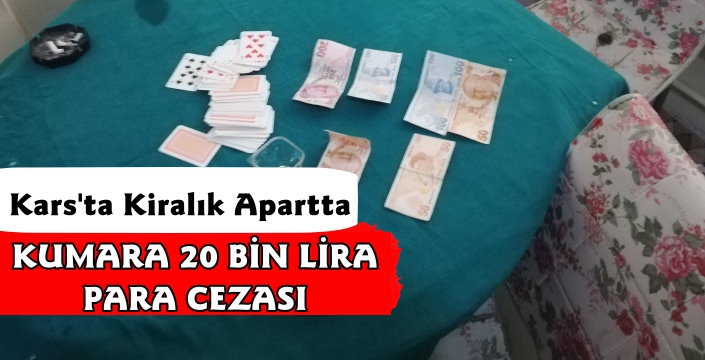 Kars Güncel- İl Emniyet Müdürlüğü'nden yapılan açıklamada; "Bir apartın kumar oynatmak için kiralandığı ve 4 şahsın kumar oynadığı tespiti üzerine,şahıslara ve iş yeri yetkilisine Covid-19 tedbiri kapsamında 20.650 TL idari para cezası uygulanmış,Kumar Oynanması için Yer ve İmkan Sağlama suçundan adli işlem yapılmıştır."denildi.