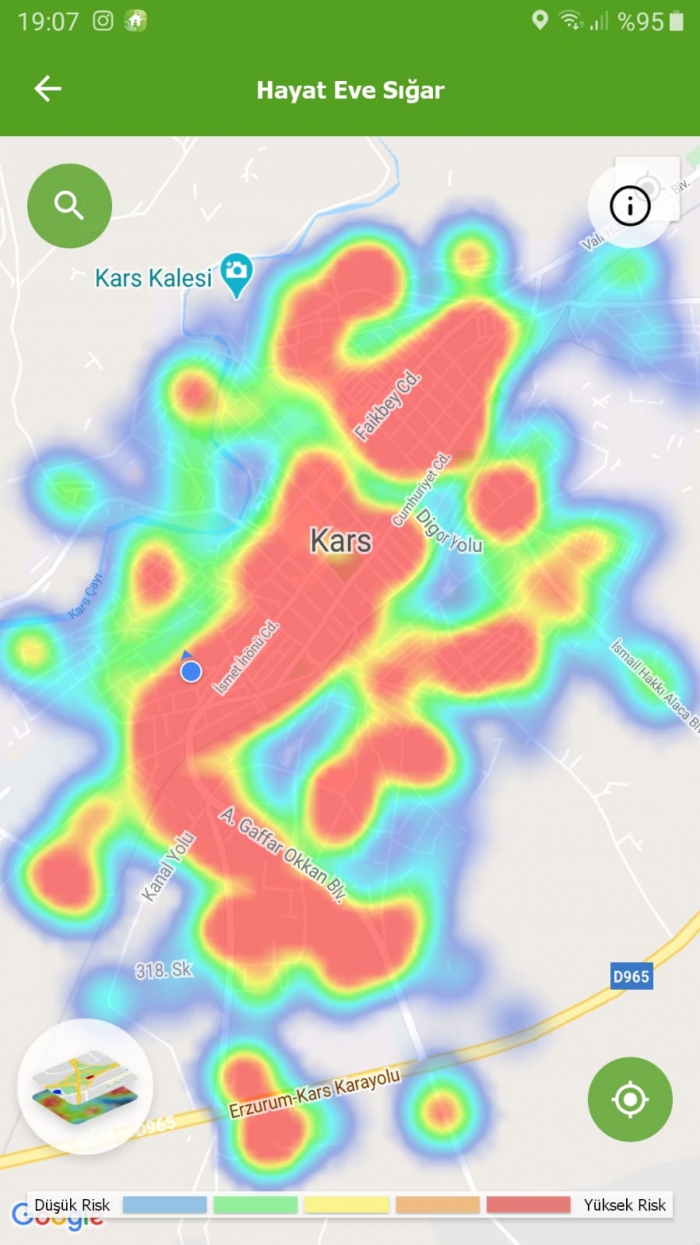 Sağlık Bakanlığı tarafından uygulamaya konulan Hayat Eve Sığar (HES) uygulamasında Kars'ta merkezin koronavirüs yoğunluk durumu 12 günlük farkı dikkat çekti.