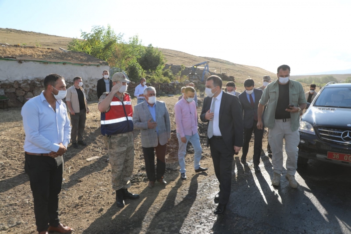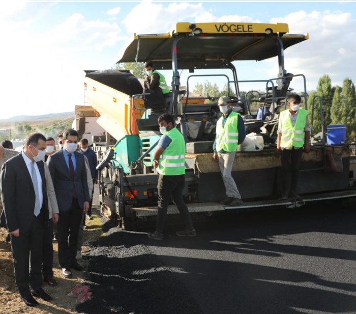 Vali Türker Öksüz, Arpaçay-Koçköy arasında yapılmakta olan 6 Km'lik Bitümlü Sıcak Karışım (BSK) asfalt aşınma tabakası çalışmasını inceleyerek yetkililerden bilgi aldı.
