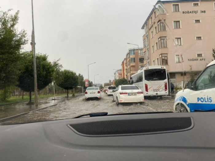 Kars Güncel- Kentte aniden başlayan sağanak yağış nedeniyle bazı caddeler göle döndü. Yağışın etkisini artırmasıyla birlikte yağmur bacaları suyu çekmekte zorlandı.