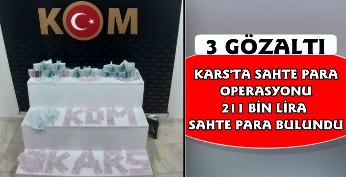 Kars Güncel- Kars'ta KOM Şube ekipleri tarafından sanayi girişinde durdurulan araç içerisinde 211 bin 600 lira sahte Türk Lirası ele geçirildi. Araç içerisinde bulunan D.M.B., İ.N. ile Ö.A. isimli şahıslar gözaltına alındı.