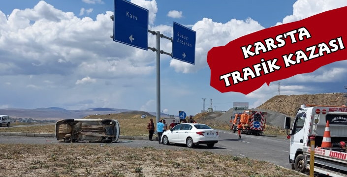 Kars Güncel- Edinilen bilgiye göre Kars - Ardahan karayolu Çamçavuş Kavşağında iki araç çarpıştı. Çarpışmanın etkisiyle kazaya karışan araçlardan birisi karayolunda yana devrilerek durabildi.