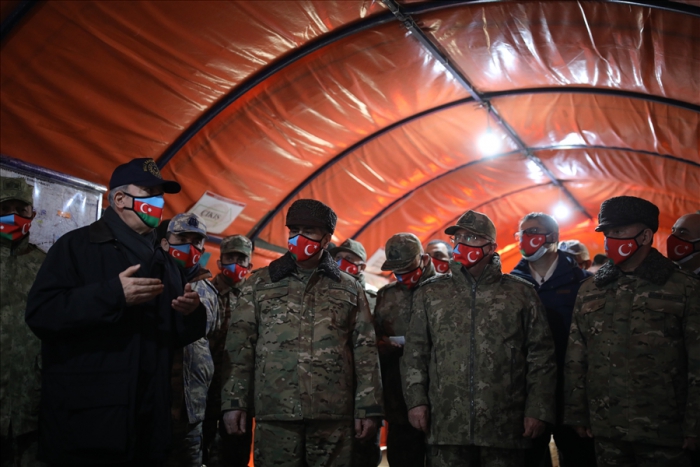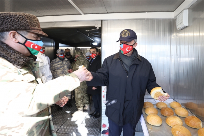 Buradaki sahra fırın ünitesinde yapılan ekmeklerden birini bölerek Konuk Bakan Hasanov ile Komutanlara ikram eden Bakan Akar, yerli ve millî üretim zırhlı ambulansı da inceledi.
