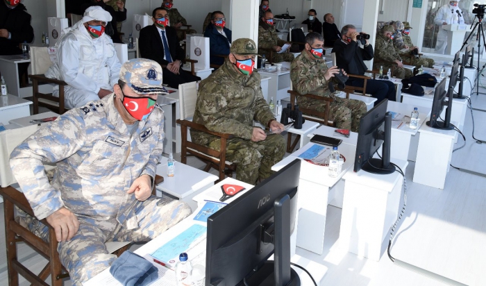 İlk olarak Esas Komuta Yeri'ne geçen Bakanlar Akar ve Hasanov, tatbikata ilişkin bilgi aldı. Analiz Grubu Başkanı tarafından tatbikatın durum özetine yönelik yapılan bilgilendirmenin ardından her iki bakan yeni nesil üniteleri inceledi.