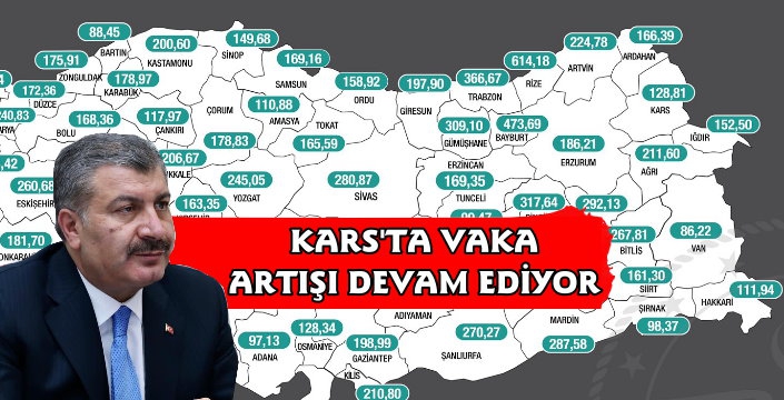 Açıklanan tarihlere göre Kars'ta vaka oranları şu sekilde;