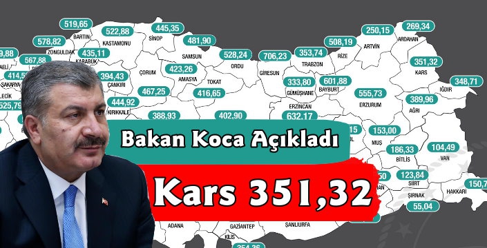 Kars Güncel- Sağlık Bakanlığı Türkiye'nin il il 17-23 Nisan tarihleri arasına ait 100 bin nüfusa göre vaka tablosunu açıkladı. Belirtilen tarihlerde Kars'ta vaka yoğunluğu 351,32'ye yükseldi.