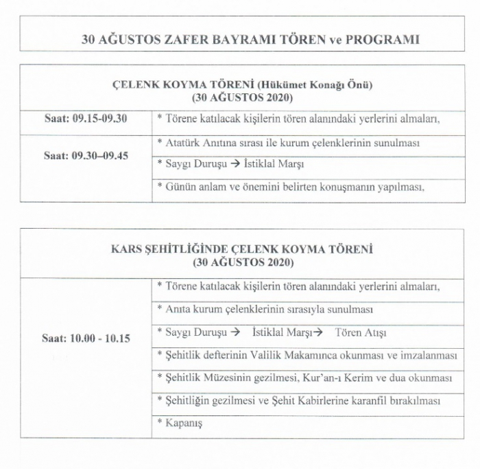Kars Güncel- Kars Valiliği'nden yapılan açıklamada; "Tarihe altın harflerle yazdırdığımız 30AğustosZaferBayramı ’nın 98. yıl dönümünde pencere ve balkonlarımızı şanlı al bayrağımızla donatalım, zafer coşkusunu ve gururunu birlikte yaşayalım." denildi.