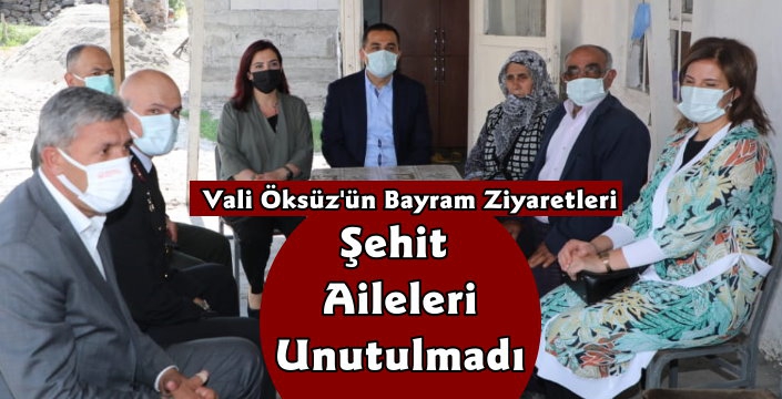 Vali Öksüz sırasıyla Huzurevi'ni, Engelsiz Yaşam ve Rehabilitasyon Merkezini, Şehit P.Uzm.Çvş.Tahsin Yıldırım ve Şehit Er İlyas Ötünçtemur'un ailesini ziyaret ederek kurban bayramlarını tebrik etti.