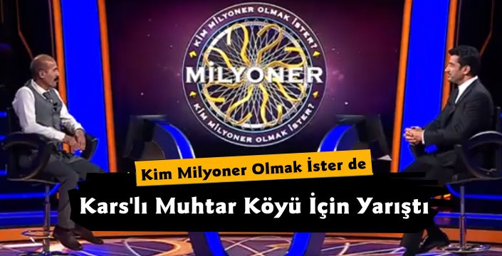 Kars Güncel- ATV ekranlarında Kenan İmirzalıoğlu'nun sunduğu Kim Milyoner Olmak İster? yarışmasının dün yayınlanan bölümünde Kars'ın Digor ilçesi Uzunkaya köyü muhtarlığı yapan İdris Ertek'te ekran karşısına çıkarak soruları cevapladı.