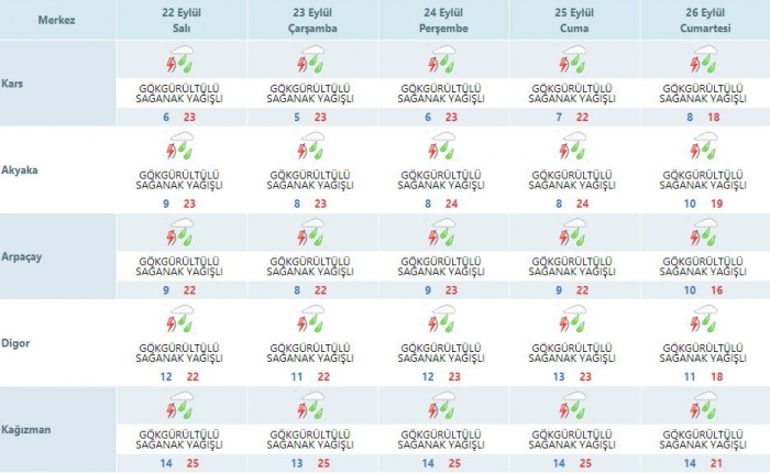 Meteoroloji'den Kars İçin Sağanak Yağış Uyarısı