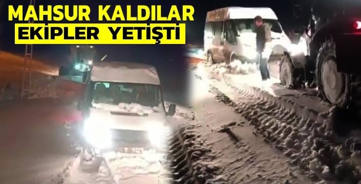 Edinilen bilgilere göre, tipi nedeniyle yoldan çıkan bir minibüs kara saplandı. İçerisinde vatandaşların bulunduğu minibüsün sürücüsü durumu hemen 112 Acil Çağrı Merkezi’ne bildirdi. İhbar üzerine Kars İl Özel İdaresi’ne bağlı karla mücadele ekipleri iş makineleriyle bölgeye sevk edildi.