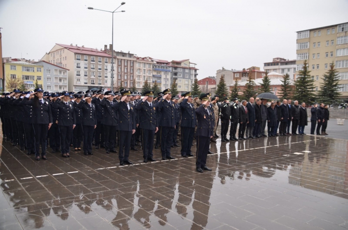 İlk olarak Kars Valiliği önünde bulunan Atatürk anıtına çelenk sunan emniyet teşkilatı İstiklal Marşı okuyarak, Gazi Mustafa Kemal Atatürk başta olmaz üzere tüm şehitler ve gaziler için saygı duruşunda bulundu.
