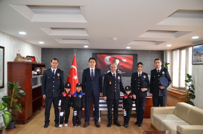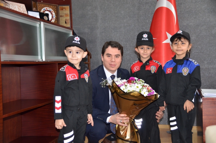 Buradaki törenin ardından Kars Garnizon Şehitliği’ne giderek dualar okunması ardından, İl Emniyet Müdürü Sağdıç ve geleceğin minik polis adayları Kars Vali Vekili Muhammed Furkan Tuna’yı makamında ziyaret etti.
