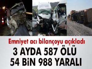Yurt genelinde yılın ilk 3 ayındaki kazalardan 35 bin 285'ine sürücü, 3 bin 628'ine yolcu ve 271'ine ise yol kusuru sebep oldu. Araç hızını yol, hava ve trafiğin gerektirdiği şartlara uydurmayan 15 bin 91 sürücü kazaya davetiye çıkardı. Kırmızı ışık veya görevlinin dur işaretine uymayan 905 sürücü ile alkollü olarak direksiyon başına geçen 698 sürücü de yaralamalı ve ölümlü trafik kazasına karıştı. Üç aylık dönemde aşırı hız yapan 399 sürücü de kazaya karıştı. Bin 88 kazaya bisiklet, 9 kazaya at arabası, 82 kazaya ambulans, 22 kazaya da tren karıştı. Kural ihlali yapan 2 milyon 111 bin 519 sürücü ve yolcuya 547 milyon 715 bin 668 lira ceza yazıldı. Yapılan trafik kontrollerinde alkollü olarak araç kullandıkları tespit edilen 26 bin 155 sürücü hakkında da yasal işlem yapıldı.