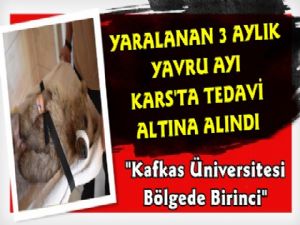 Erzurum'un İspir ilçesinde ayağı kırık halde Doğa Koruma ve Milli Parklar Erzurum Bölge Müdürlüğü tarafından bulunan 3 aylık yavru boz ayı Kars'ta tedavi altına alındı.
