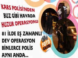 Kars Güncel-81 ilde 50 bin 696 polisin katılımıyla huzur operasyonu yapılıyor. Türkiye genelinde 50 bin 696 polisin katılımıyla huzur operasyonu başlatıldı.