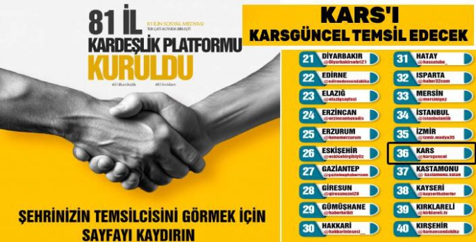 Kars'ı bu platformda www.karsguncel.com temsil ediyor. Platform, Türkiye’nin tüm illerinin sosyal medya hesaplarının güç birliği yaparak ülke gündemine dair fikir birliği oluşturmasını amaçlıyor. Karsgüncel, bu kapsamda Kars’ın yerel gündemini, ulusal seviyede daha geniş bir kitleye ulaştırmayı hedefliyor.