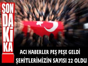 Şehitlerimizin sayısı 22'ye yükseldi