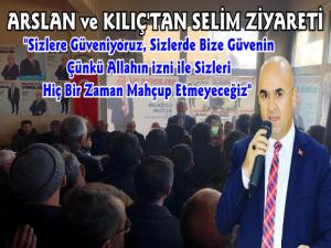 Arslan ve Kılıç'ın son ziyaretleri Karsın Selim İlçesi'ne oldu. Burada Selim Belediye Başkan Adayı Coşkun Altun ve partililer tarafından karşılan vekiller ilçe ziyareti gerçekleştirdikten sonra seçim koordinasyon merkezine geçti. Burada kendilerini bekleyen vatandaşlara konuşan Arslan ve Kılıç AK Parti iktidarı ile Selim ilçesinde bir çok alt yapı ve üst yapı yatırımının gerçekleştirildiğini, Selim İlçesi için çalışkan başkan Coşkun Altun'a şimdiye kadar destek olunduğu gibi bundan sonrada ilçe adına yapılacak olan bütün yatırımlara her türlü desteğin sağlanacağını belirterek vatandaşlardan daha yaşanılabilir bir Selim için 31 Mart seçimlerinde AK davaya bu kutlu yürüyüşe destek olmalarını istediler.