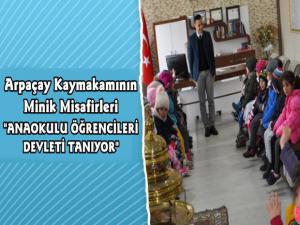 Kars Güncel-Kars'ın Arpaçay ilçesi Merkez Anaokulunun minik öğrencileri hem devlet kurumlarını tanımak hem de meslekler hakkında bilgi edinmek amacıyla öğretmenlerinin rehberliğinde Arpaçay ilçesindeki kurumları ziyaret ettiler. Bu kapsamda Kaymakamlığı da ziyaret eden öğrenciler, Kaymakam Abdil Koç'un misafiri oldular. Çocuklara mesleğini ve kurumunu anlatan Kaymakam Koç, bu ziyaretten duyduğu memnuniyeti dile getirerek minik öğrencilere ve öğretmenlerine teşekkür etti.