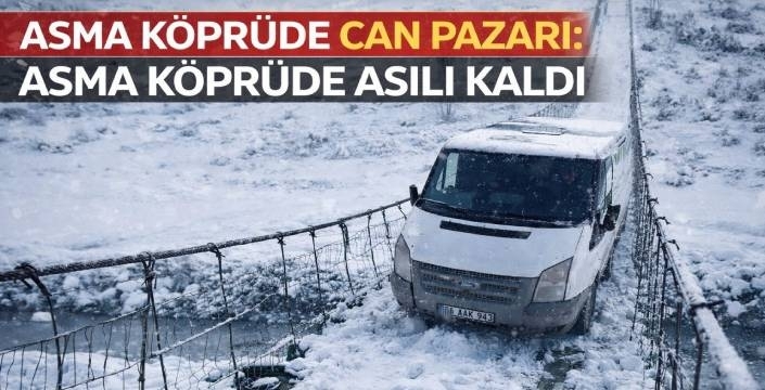 Kars’ın Akyaka ilçesine bağlı Küçükaküzüm köyünde bulunan asma köprüde mahsur kalan ekmek dağıtım minibüsü, yürekleri ağızlara getirdi.