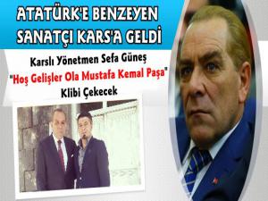 Atatürk'e benzerliğiyle dikkatleri çeken Ardahanlı sinema ve tiyatro sanatçısı Göksel Kaya, Kars Tren Garında çekilecek klip için Kars'a geldi.