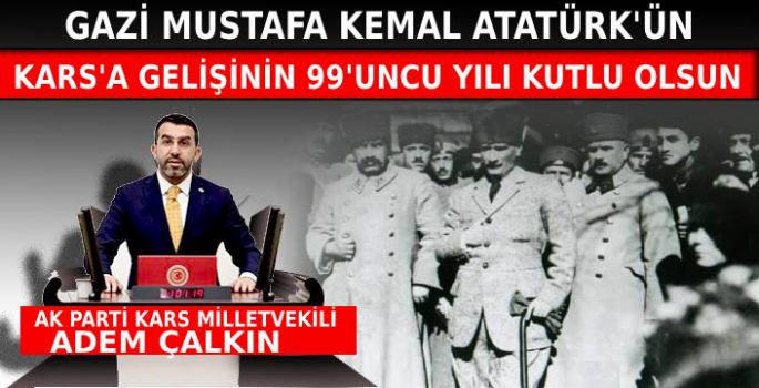 AK Parti Kars Milletvekili Adem Çalkın Cumhuriyetimizin Banisi Gazi Mustafa Kemal Atatürk'ün Kars'a gelişinin 99 Yılı dolayısıyla bir mesaj yayınladı.