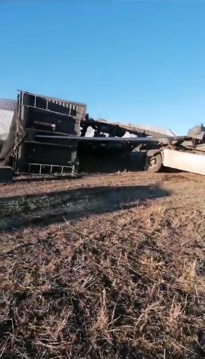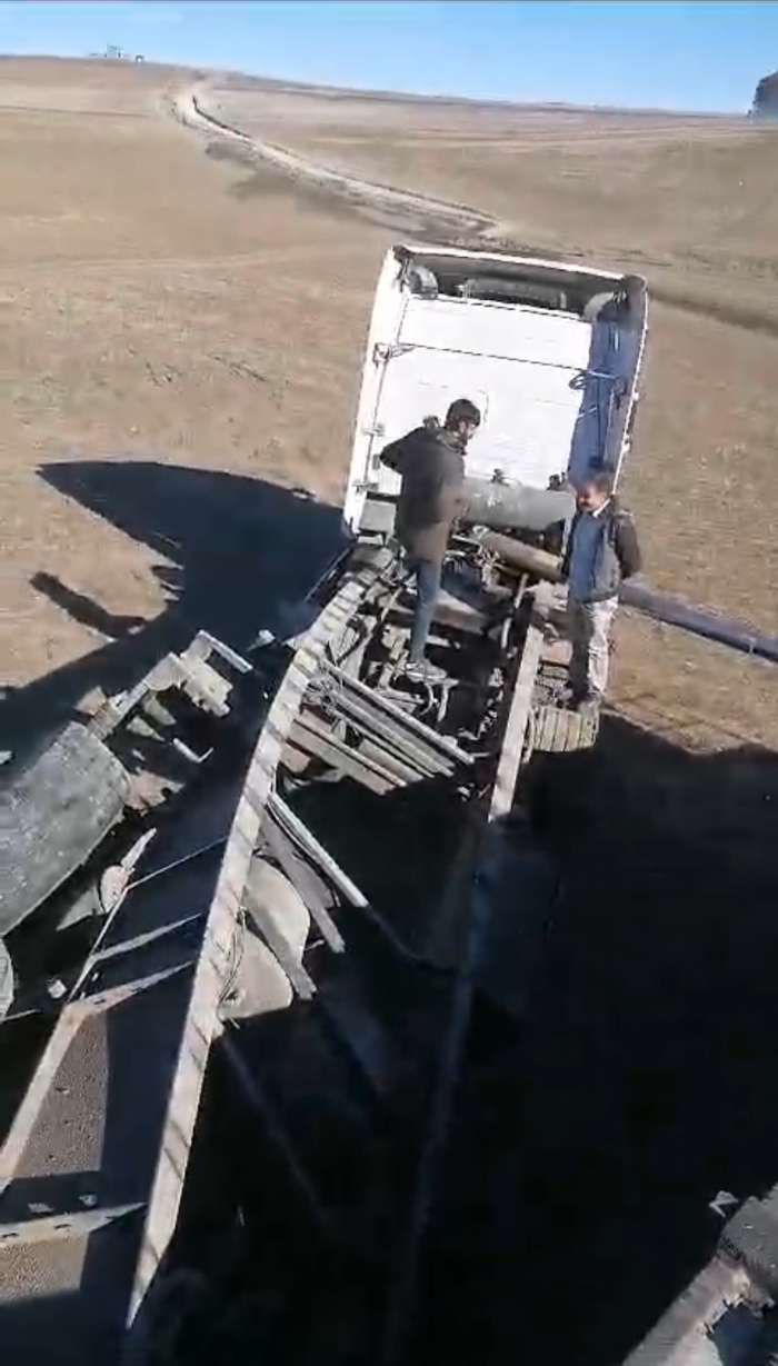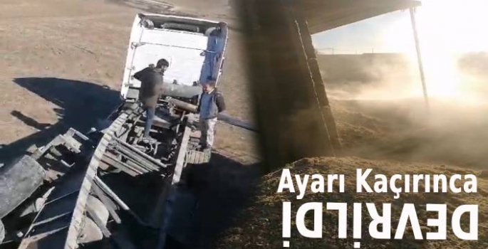 Kars’ın Akyaka ilçesi Büyükdurduran Köyü’nde vatandaşlar hayvanlarının kışlık yiyeceğini katkı için köye küspe getirtti. Bu dakikaya kadar her şey normal giderken köye gelen tır yamaç alanda damperi fazla kaldırınca ortalık savaş alanına döndü.