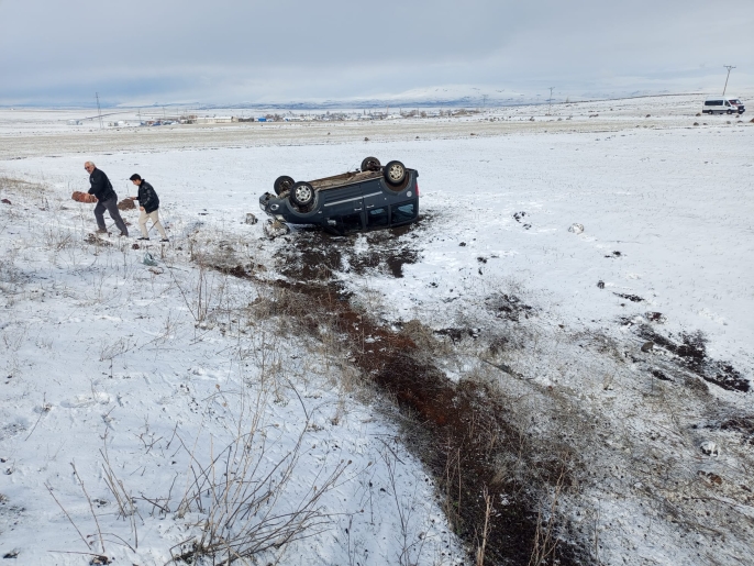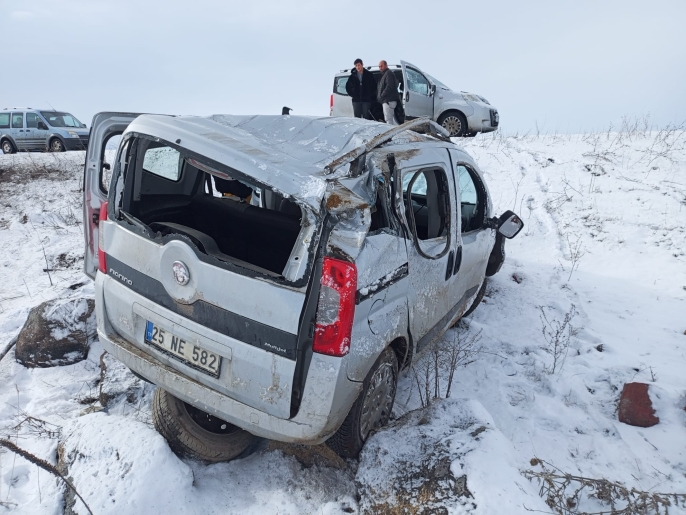 Kars’ta Buzlanma Kazaları: İki Araç Peş Peşe Takla Attı