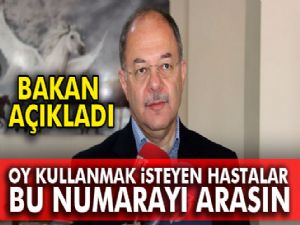 Kars Güncel-Sağlık Bakanı Prof. Dr. Recep Akdağ, 16 Nisan'da yapılacak referandumda oy kullanmak isteyen hastalara mahsus özel telefon hattı kurulduğunu belirterek, "Oy kullanmak isteyen hastalar, 4443833 numaralı evde sağlık hizmetlerinin çağrı merkezini arasın" dedi.