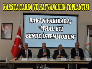 Konuşmasında İthal Et konusuna değinen Bakan Fakıbaba; İthal eti hiç kimse bende başta olmak üzere istemiyorum, ama Türk halkının et ihtiyacını protein ihtiyacını, torunlarımın çocuklarımın protein ihtiyacı var ve ben bunu şuanda karşılayamıyorsam geçici bir süre ithalin hiçbir zaman kalıcı biz çözüm olmadığını bilen kardeşlerinizden biriyim. Geçici bir süreliğine ve anayı arttıra bileceğimiz yani düveyi arttırmak yeni yavrular elde etmek ve hayvancılıkla uğraşan kardeşlerimizi mutlu etmek adına biz bunu en kısa sürede üç sene gibi bir süre içerisinde ülke olarak geçeceğimize beraber el ele vererek geçeceğimize inanıyorum. Kars içinde Diyarbakır içinde ne gerekiyorsa onu yapacağız. Çalışıyoruz ve çalışarak yapamayacağımız hiçbirşeyin olmadığına inanıyorum. Türkiye'de yaşayanların Allah'ın izni ile aşamayacağımız hiçbir şey yok. Ve bu konuyu da aşacağız. Ve ilerleyen süreçte üretimimiz artacağından fazlası nıda ihraç edeceğimiz bir hale geleceğiz. Projelerimiz bellidir. Her zaman söylerim ot olmaz ise et ve süt olmaz, hatta biraz daha değiştiriyorum ne kadar et o kadar süt ve et . İnşallah bu projelerimiz devam ediyor, biz bunları yapabilecek güçteyiz. Benden önceki arkadaşlarda bunu başardı ve bizde bu bayrağı aldık daha ileriye götürerek başaracağız." dedi.