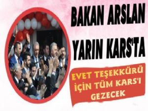 Ulaştırma, Denizcilik ve Haberleşme Bakanı Ahmet Arslan yarın hava yoluyla memleketi Kars'a geliyor.
