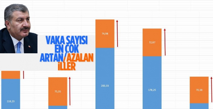 Kars Güncel- Sağlık Bakanı Dr. Fahrettin Koca Türkiye'nin il ile vaka yoğunluğu gösteren 6-12 Mart tarihleri arasındaki 100 bin nufüs oranına göre vaka sayılarının paylaşıldığı tabloya göre en çok vaka artışı ve azalışı yaşanan illeri açıkladı.