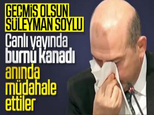 Bakan Soylu'nun, İdlib Yardım Kampanyası Toplantısı'nda açıklama yaparken burnundan kan geldiği görüldü. O anlar, toplantıyı canlı yayınlayan televizyonların kameralarına yansıdı.
