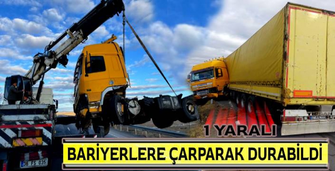 Kontrolden çıkan tır bariyerlere çarparak durabildi. Kazayı gören diğer sürücüler durumu sağlık ekiplerine bildirdi. Kısa süre içerisinde olay yerine gelen ambulansla yaralanan tır sürücüsü hastaneye götürülürken, tır olay yerine çağrılan çekici ve vinç marifetiyle kaza bölgesinden kaldırıldı.