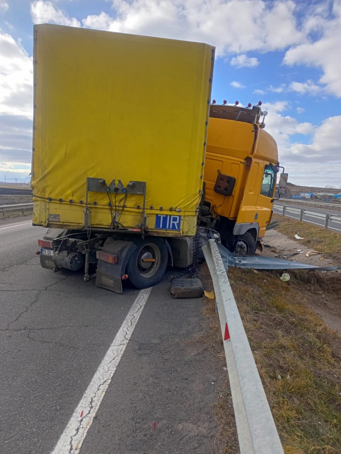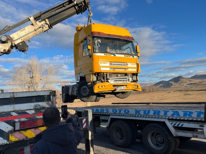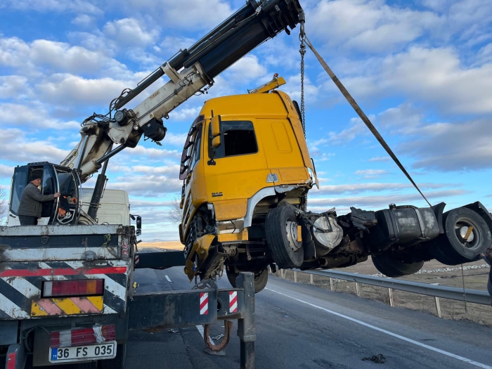 Kars Selim karayolunda meydana gelen tek taraflı tır kazasında sürücü yaralandı.